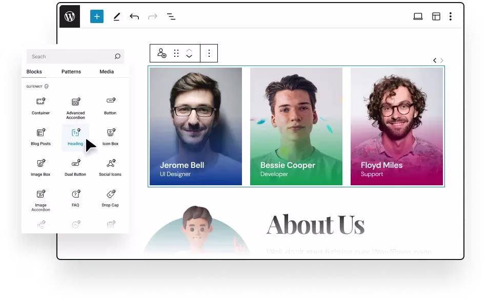 Experience the simplest way to design a responsive website with Gutenberg blocks.