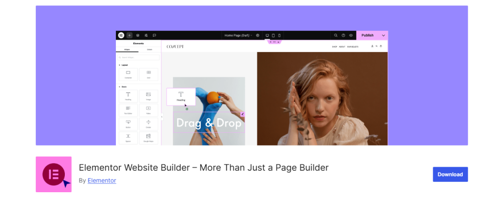 - Drag-and-drop live editor with 90+ widgets.