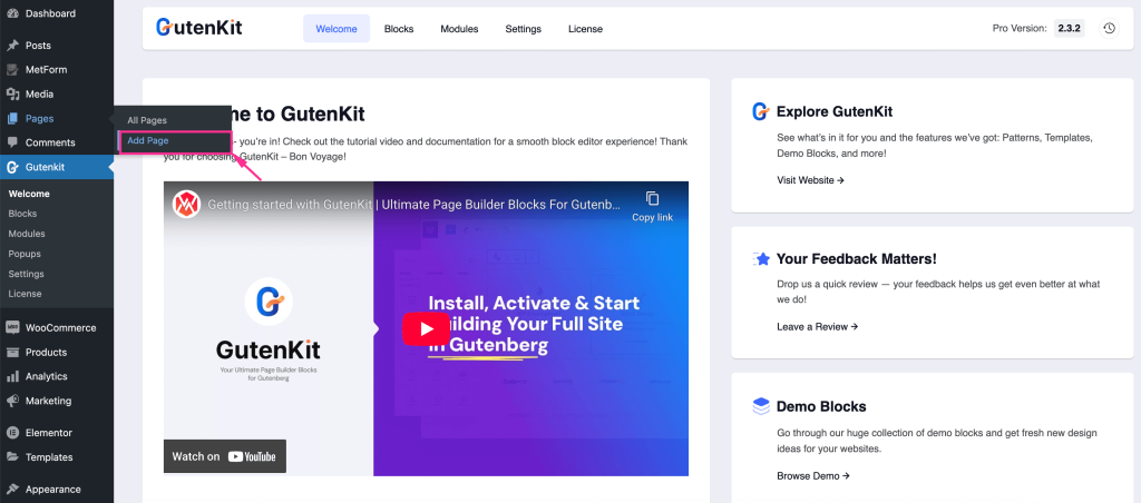 GutenKit is an ultimate Gutenberg page builder that includes numerous readymade patterns, templates, and pages for your eCommerce site. So, we’re using GutenKit as an eCommerce website builder.